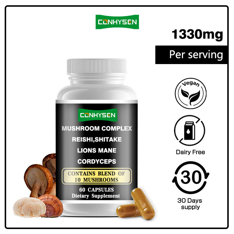 Rótulos Privados Complexo de cogumelos cápsulas estimula a imunidade saúde intestinal energia 10 cogumelos