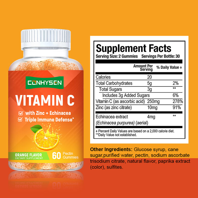 Vitaminas C pectina gomas com zinco OEM/ODM personalizado melhorar os níveis de energia
