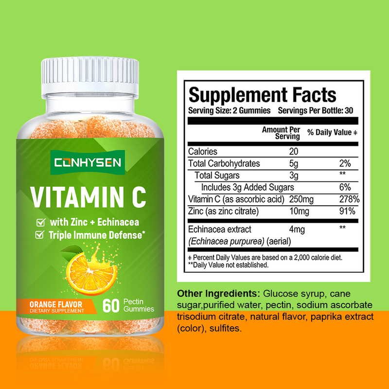 Fornecedor por atacado de gomas personalizadas de vitamina C com equinácea para proteger a saúde imunológica