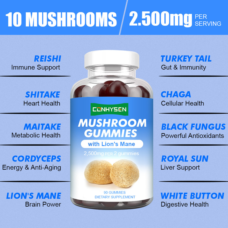 Fornecedor de Gomas de Cogumelos Fórmula Personalizada 10-em-1 Suporte à Saúde do Coração