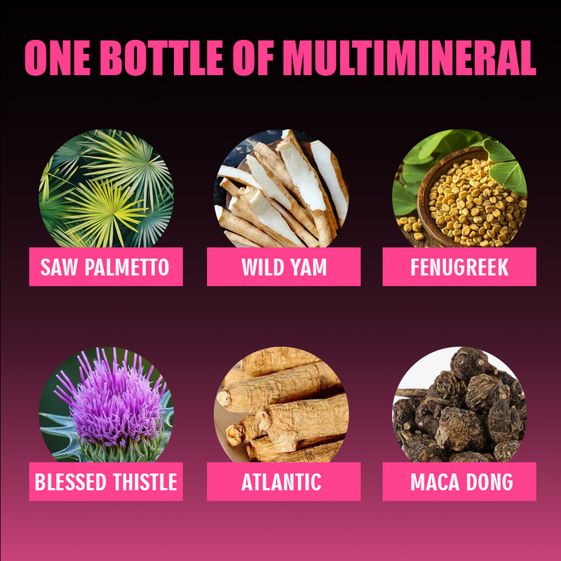 Saw Palmetto, Inhame Selvagem, Feno-grego, Cardo-benedito, Atlântico, Maca Dong