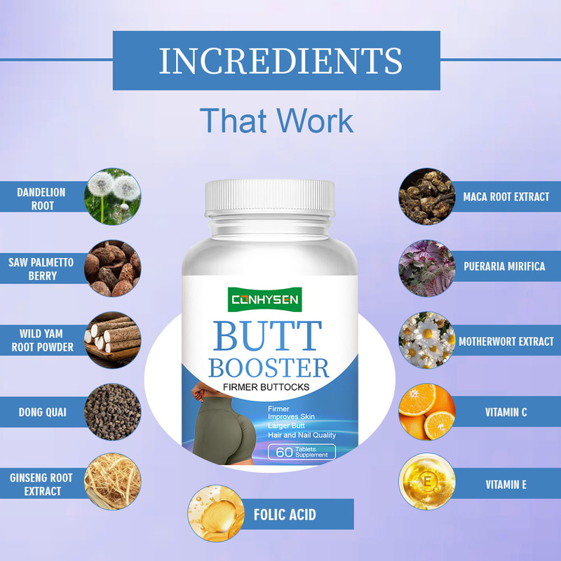 Os ingredientes ativos especiais nos comprimidos Butt Booster podem promover a regeneração do colágeno, aumentar a elasticidade dos músculos das nádegas e melhorar efetivamente o problema da flacidez. Ao mesmo tempo, este produto da Guangdong Kangsheng Pharmaceutical Technology Co., Ltd. também pode ajudar a quebrar o excesso de gordura, tornando as linhas das nádegas mais firmes e bem definidas.