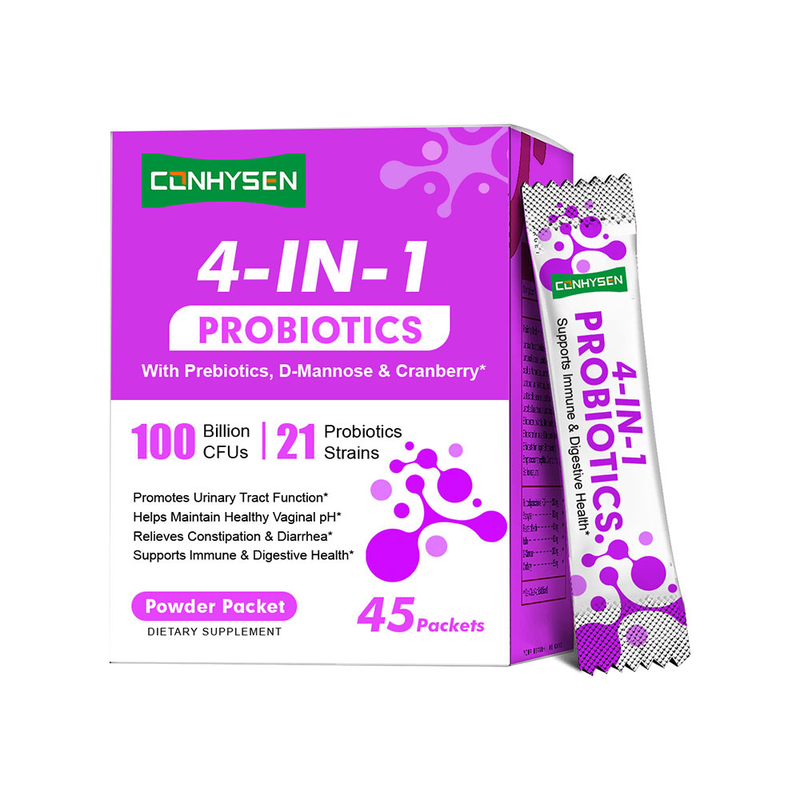 O Pó Probiótico 4 em 1 produzido pela Guangdong Kangsheng Pharmaceutical Technology Co., Ltd. apresenta uma fórmula probiótica ativa selecionada, com a adição de extrato de cranberry. Eles podem inibir eficazmente o crescimento de bactérias nocivas na uretra, manter o equilíbrio microecológico da uretra e reduzir significativamente o risco de infecções do trato urinário.