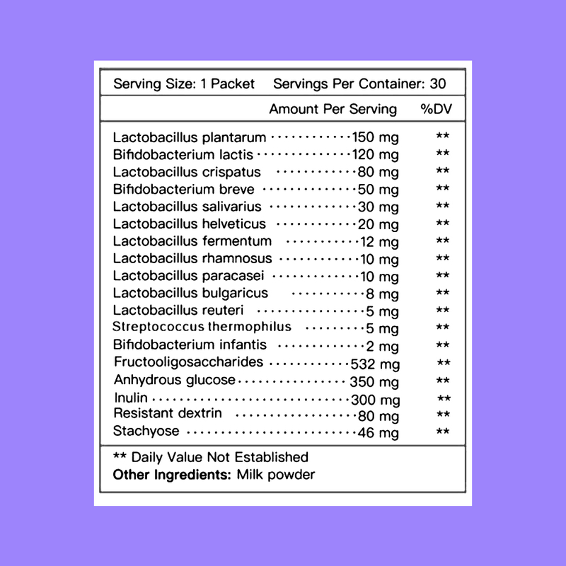 Mistura orgânica de fibras prebióticas, mistura de probióticos, estaquiose, dextrina resistente, inulina
