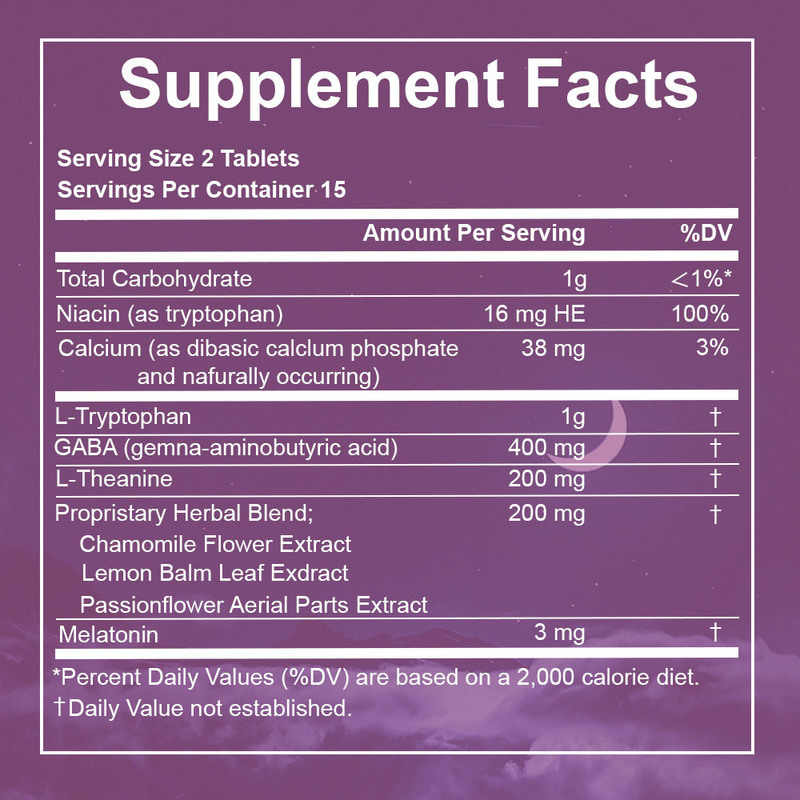 Melatonina, L-triptófano, GABA, L-teanina Folha de bálsamo de limão, extrato