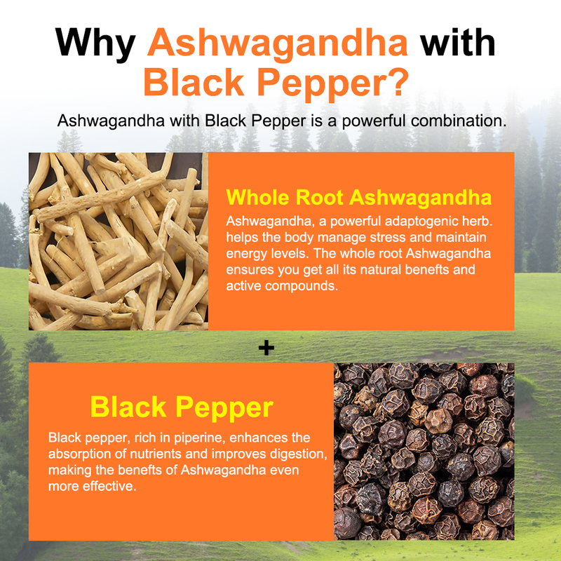 Pimenta preta orgânica, extrato de raiz de ashwagandha